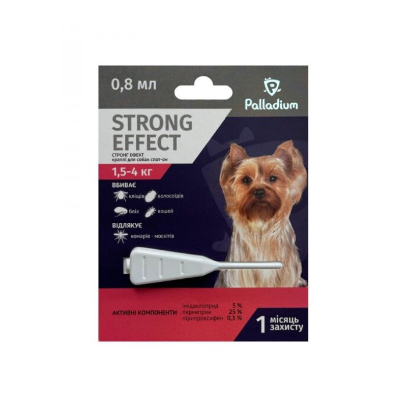 PALLADIUM STRONG EFFECT КАПЛИ ОТ БЛОХ КЛЕЩЕЙ И КОМАРОВ ДЛЯ СОБАК ОТ 1,5 ДО 4 КГ